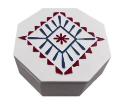 If your bathroom could use a refresh, update your shower with this jacquard shower curtain from Broyhill. Classic ivory and soft slate blue combine in a color block print for a subtle pop of color. All-cotton fabric makes for easy care so you have one less thing to worry about as you enjoy your new and improved powder room.
